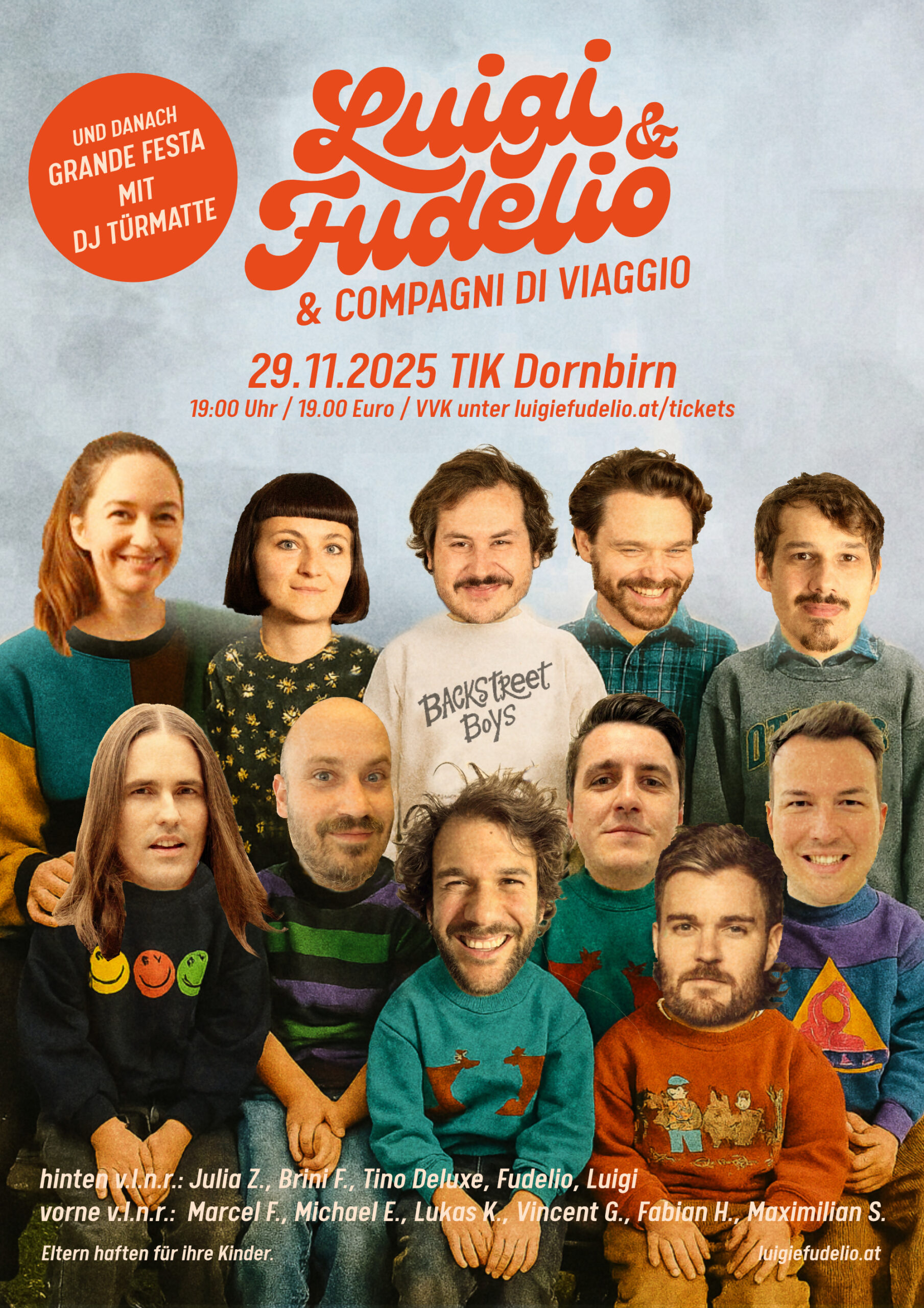 Das Debütalbum „Urlaub mit Niveau / Romantik pur“ ist letztes Jahr erschienen. Nun wollen sie ihre Veröffentlichung wieder mit einem großen Konzert aufleben lassen. Mit ihren musikalischen Reisebegleiter:innen, den compagni di viaggio – Bläser, Querflöte, Cello, Piano und Percussion – feiern sie am 29. November ihre Grande Festa im TiK in Dornbirn.